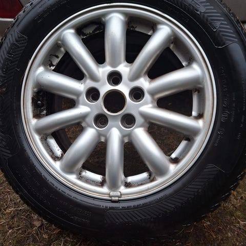Hyvä kuntoiset alkuperäiset Jaguar vanteet huonoilla kesärenkailla.