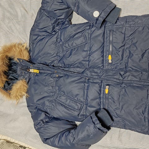 Hyväkuntoinen ja lämmin lasten untuvatakki. Kelpaa käyttää talvipakkasilla.