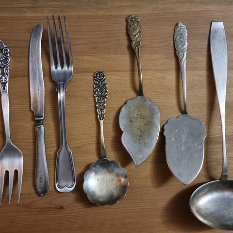 Alpakka astioita 6 kpl, erilaisia