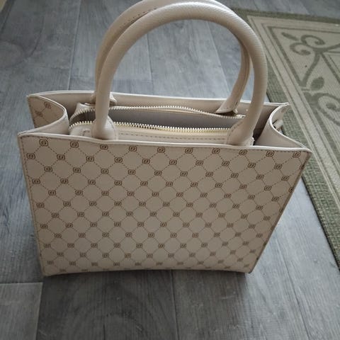 Cats käyttämätön olkalaukku. Kaksi osastoa neppareilla. Suun leveys 24 cm. Pohjan 30 cm. Korkeus 27 cm. Vaikuttaa nahalta.