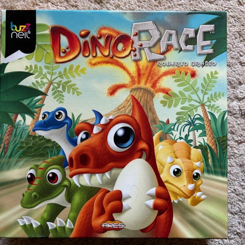 Algan valmistama Dinosaurus Seikkailu -lautapeli. Peli on seikkailupeli, jossa pelaajat yrittävät ohittaa suolla piileskeleviä dinosauruksia.