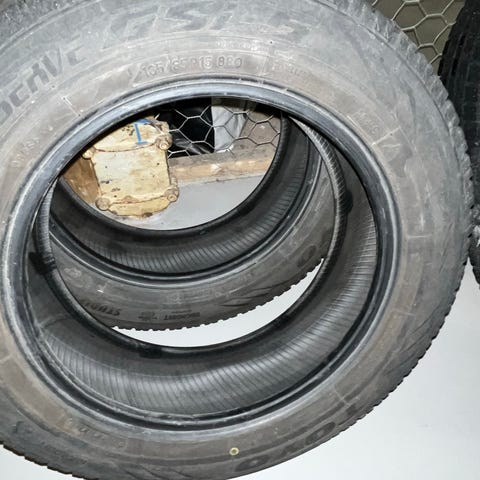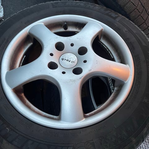 Käytetyt kitkarenkaat (4 kpl) peltivanteilla. Pulttijako 5 x 112 käy useimpiin VAG autoihin