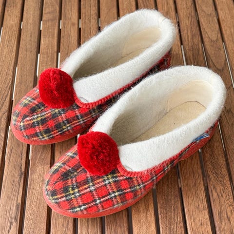 Harmaat päältä huovutetut, kevyet ja venyvä kantapään tuki. Kuvioitu kumipohja.