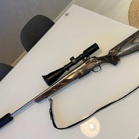 Alle 500 laukausta ammuttu. Kiikarina Bushnell Elite 4200 2.5-10x50. Mukaan löytyy myös panoksia. Tuotteen ostaminen edellyttää poliisin myöntämän hankkimisluvan.