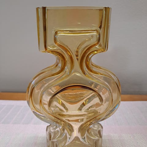 Virheetön punainen Emma-maljakko, malli 1310, -68-74 ajalta, valmistaja Riihimäen Lasi/Helena Tynell.