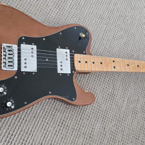 Fender Telecaster Deluxe vm. 1974. Kitara on lähes alkuperäisessä kunnossa, Ainoastaan sen kaula on uusittu edellisen omistajan toimesta 80-luvulla. Mukaan tulee alkuperäinen kova laukku. On jo 35 vuotta ollut ehdoton ykköskitarani. Mielestäni on Fenderin haaste Gibson Les Paulille ja ainakin kokeilemiini Gibsoneihin verrattuna monin verroin parempi. Jenkki-Stratocasteriini verrattuna tässä on lähes puolta tehokkaammat mikit ja todella SOI miellyttävän pehmeällä soundilla. Mieluiten myyn suoraan harrastuksen pikkuhiljaa hiipuessa. Ainoa vaihdokki jota voi yrittää tarjota on edullinen Gibson SG.
