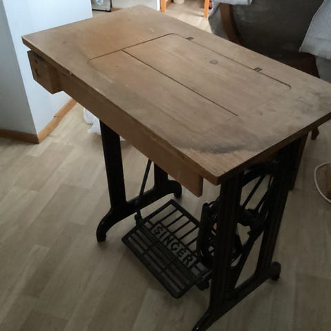 Ompelukoneen jalusta. Ei näkyvissä merkkiä missä ollut. Rakenna tästä pöytä tai entisöi ompelukone jos tiedät tarkemmin mihin sopii. Vain nouto.