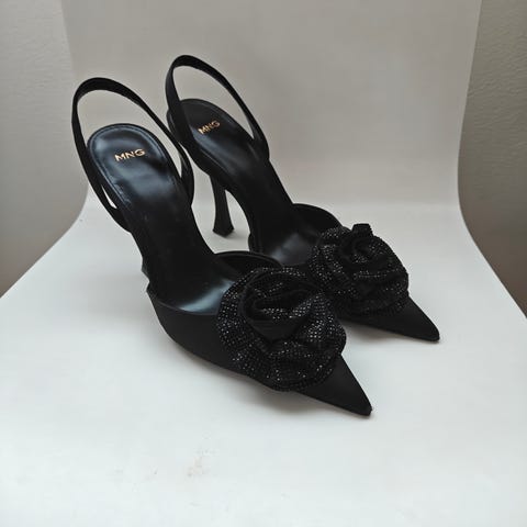 Mango korkokengät, koko 39, musta väri. Materiaalina joustava kangas, korkea korko. Naisten malli, nilkkapituiset kengät.