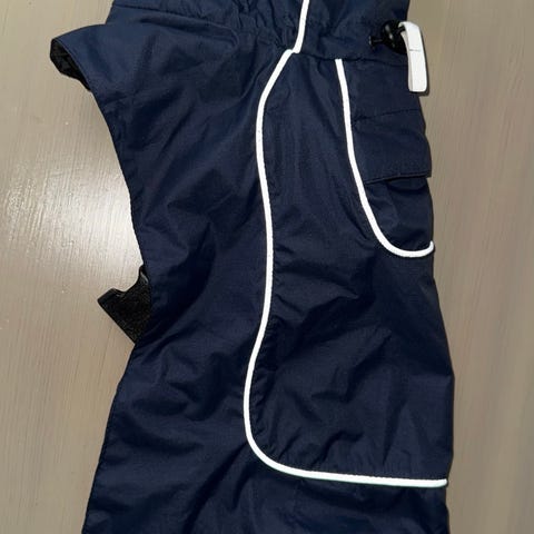 Keltainen koiran takki, jossa on heijastavat tassumerkit. Takissa on kiinnityshihnat, jotka auttavat pitämään sen paikoillaan. Takki on suunniteltu parantamaan koiran näkyvyyttä pimeällä tai hämärässä.