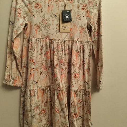 Ma-ia mekko 134 ja Gugguu mekko, kokolappu leikattu, koko 128 tai 134.