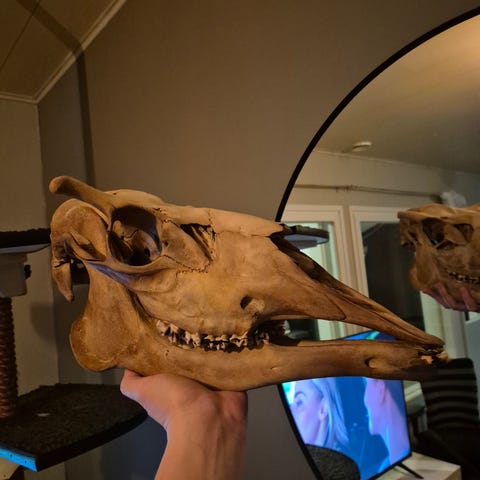 Noin 30cm pitkä metsäkauriin kallo sarvineen.