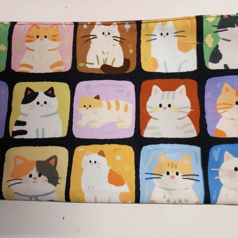 Tukevaa puuvillaa, vuori ja ohut tukikangas. 25cm x 15cm