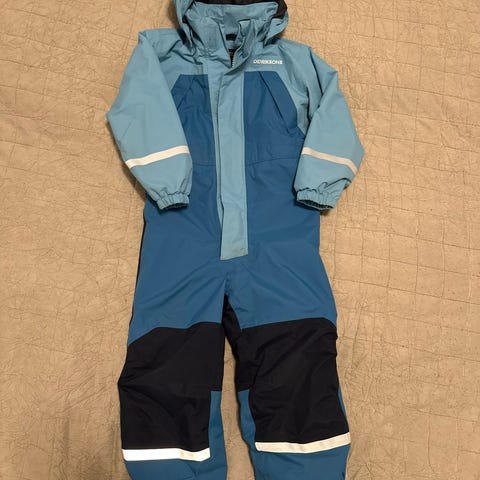 Didriksons lasten haalari sininen/tummansininen, koko 100. Haalari on vedenpitävä. Siinä on vuori, mutta ei toppavuoria. Hihoissa ja lahkeissa on säätövaraa, jonka voit itse helposti vapauttaa. Haalari on nyt pienemmässä koossaan. Ollut käytössä yhdellä lapsella. Ehjä ja vedenpitävyys tallella.