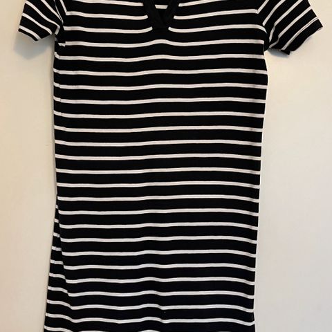 Käyttämättä jäänyt mekko. Alaspäin levenevä malli. Kangas on joustavaa, hyvin lasketuvaa ja vähän läpikuultavaa. Mekkoon kuuluu myös spahettiolkaiminen, viskoosista valmistettu alusmekko. Pituus olkapäältä helmaan 110 cm. Mekko on mukava päällä ja sopii pieneen juhlaankin.