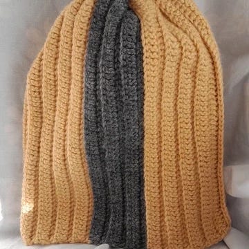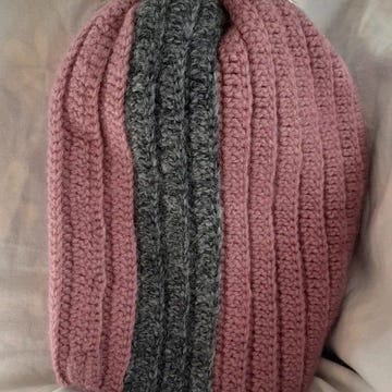 Käyttämätön villasekoite pipo, tekokarva tupsulla ja tupsu on irrotettava.
