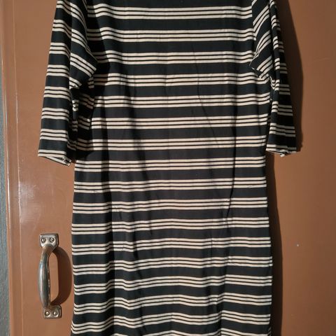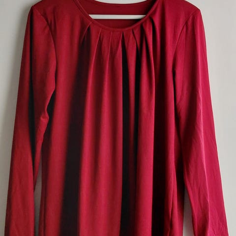 Naisten S/M kokoinen pitkä trikoopaita, joka takaa pidempi kuin edestä. Edessä taskut ja olkapäät auki, eli olkapäät jää osittain paljaiksi tässä. Siisti ja ehjä.