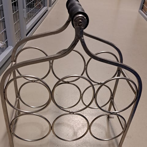 Krominen viinipulloteline. Telineeseen mahtuu 16 pulloa. Ei tarkkaa mittaa, mutta noin 1m korkunen. Vähän käytetty. Vain nouto.
