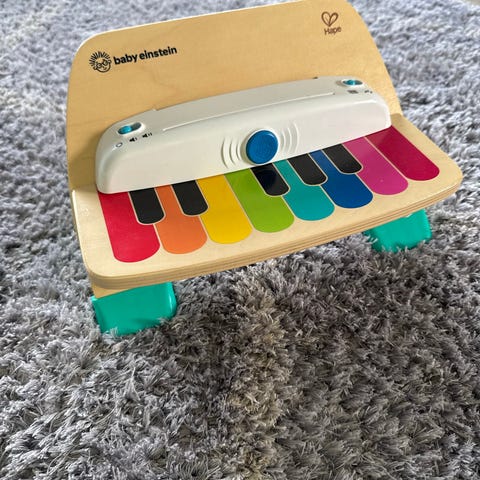 Baby Einstein Hape lasten leikkipiano, jossa on värikkäät koskettimet ja kolme vaihtokorttia. Sopii lapsille musiikin harjoitteluun ja leikkiin.