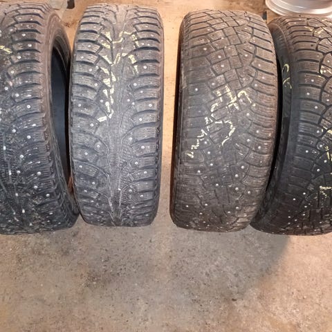Kuvien mukaisesti 4kpl Continental 205/55 R16 kokoiset nastarenkaat. Pintaa on, mutta nastoja puuttuu jonkin verran. Kuljetus onnistuu Lahden alueella.