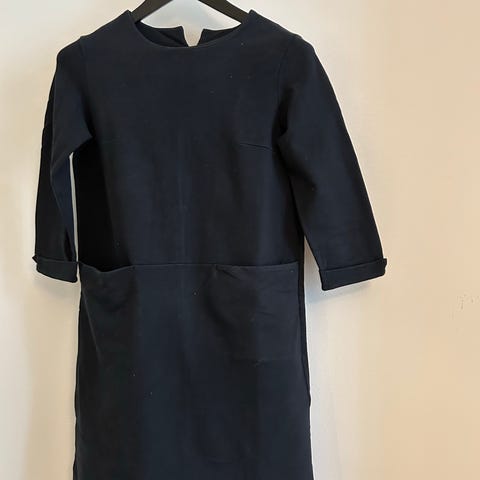 Virolaisen muotisuunnittelija tekemä mekko. Hieman joustavaa materiaalia. Noin m koko