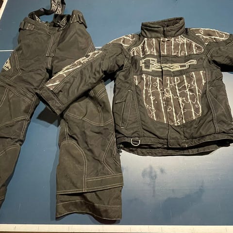 Yhden talven käytössä ollut haalari. Polvissa hiukan kulumaa ja pienivekki (näkyy kuvissa) koko12