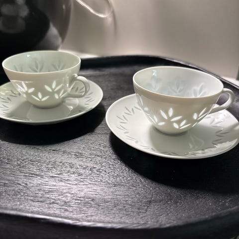 ARABIA aamiaisastia " Riikinkukko" lautanen ja "Kilta" teekuppi.