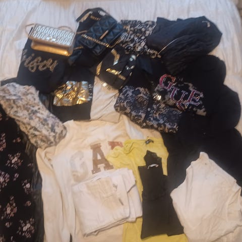 Myydään vaatteita kasa. Hiukan käytettyjä paitsi Puman toppi. Farkut ja "leopardi" housut tuotu Brasiliasta.