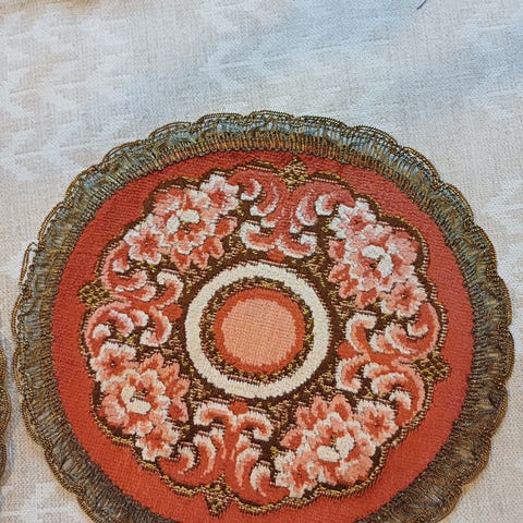 Kaksi kaunista pyöreää liinaa halkaisija 35cm. Molemmat yhteensä 10€. Voin lähettää kuluja vastaan