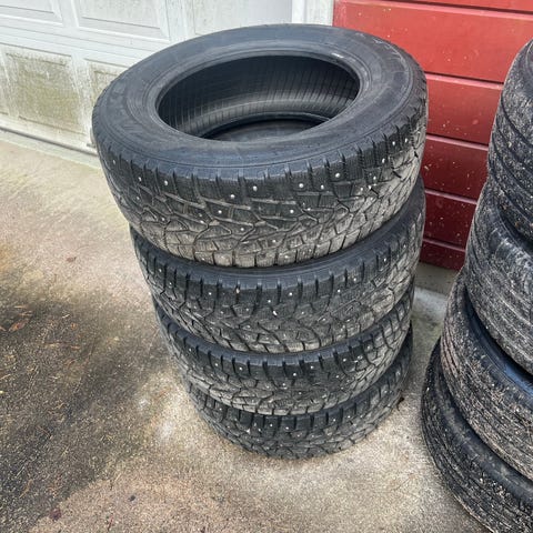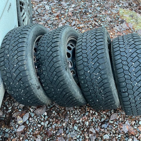 Myyntiin halvalla hyvät nastarenkaat suorilla vanteilla, hyvin nastoja kaikissa poislukien yhdessä renkaassa.