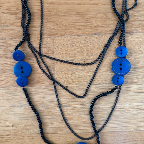 Hauska piristävä kaulakoru.Nappiaiheinen.Napit3 cm halkaisija.Koru on Italiasta.Ehjä ja moitteeton.Nouto Tuusula.Postitus plus kulut.160 cm pitkä.