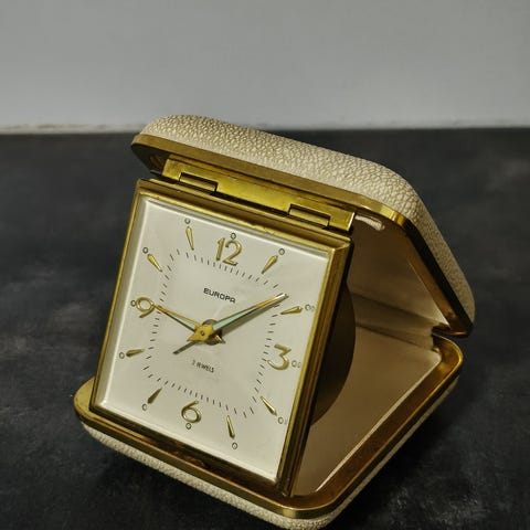 Myydään vanha Europa-merkkinen mekaaninen matkakello. Valmistettu Saksassa.
