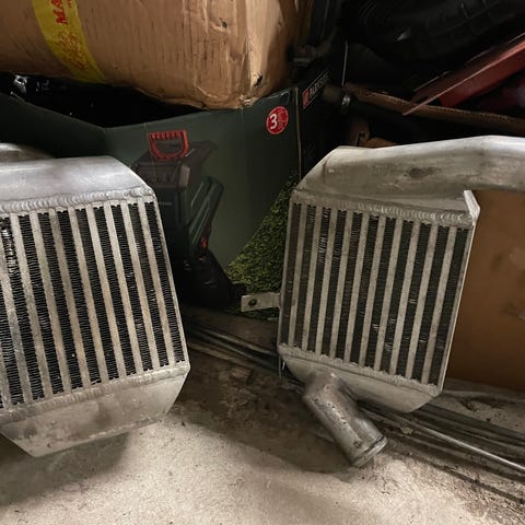 Tästä isompi välijäähdytin vitoskopan Golffiin. Vähän likainen alaosasta mutta ehjä ja siivekkeetkin jäähdyttimessä suorat että ilma kulkee läpi.