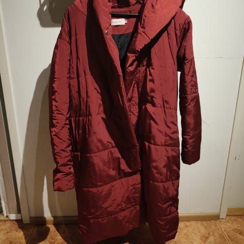 Hyvässä kunnossa oleva musta Voglian takki. Takissa on vyö vyötäröllä ja koristellut napit.