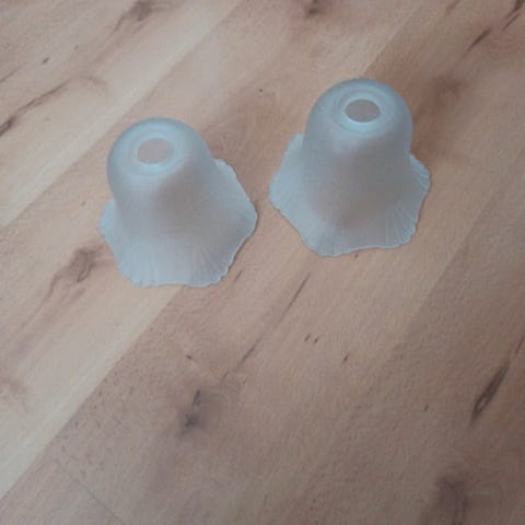 Kupujen korkeus 12 cm, reiän halkaisija 3 cm eli sopivat ainakin e14 kantaisiin valaisimiin.