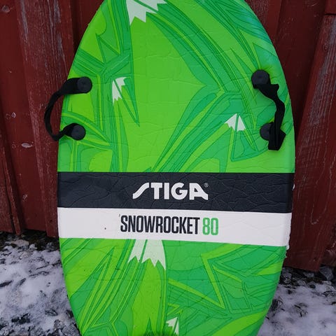 Kohtuullisessa kunnossa oleva liukuri mäenlaskuun. Kahvat kiinnipitoa varten.