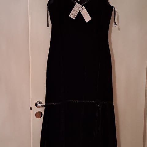 Monikäyttöinen, juhlava, uusi, upea musta mekko. Koko UK20, vastaa kokoa 46-48. Mekossa on hihaton malli ja kerroksellinen, liehuva kangas, joka lisää mekkoon liikettä ja ilmettä. Liehukkeet peittävät armollisesti vatsan seutua, kauluksessa kauniit koristeet. Kai-kai 60 cm, olka-helma 105 cm. Hinta 59€ + pk mmm