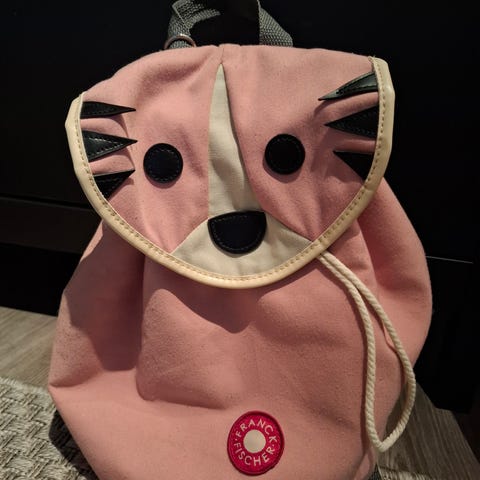 Koulureppu reilun kokoisella etutaskulla ja pehmustetuilla säädettävillä olkahihnoilla. Korkeus 39cm, leveys 30cm, ja syvyys 12cm. Käytönjälkiä on. Ehjä reppu.