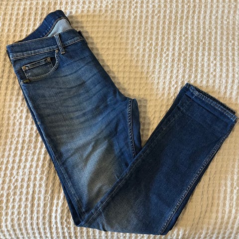 Toisen lahkeen ratkennutta saumaa lukuunottamatta hyväkuntoiset farkut. Jos neula ja lanka pysyy kädessä, niin saat helposti korjattua näistä ehjät ja eheät!
