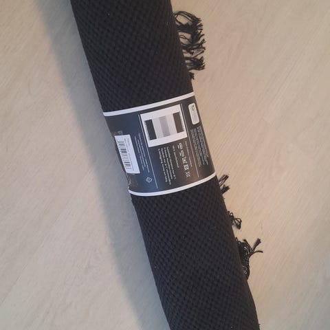 House Doctorin tyylikäs raidallinen puuvillamatto sinisen ja ruskean sävyissä. Pituus 200 cm, leveys 84 cm. Ollut meillä eteisessä, mutta toimii oivallisesti myös keittiössä ja makuuhuoneessa. Pesu jää ostajalle.