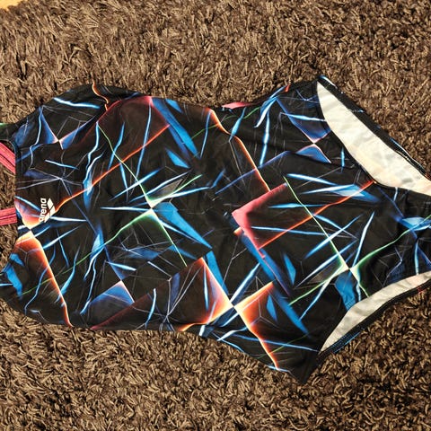 Arena uimapuku naisille, koko 36 (XS/S). Väri musta, edessä tummanpinkit tehosteraidat. Uimapuku on uusi, käyttämätön.