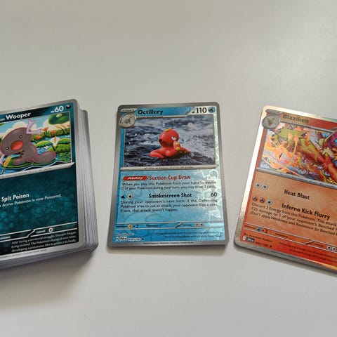Myydään Pokemon kortteja 100 kpl. Kortit ovat todella hyvässä kunnossa. Kaikki erilaisia, ei kaksoiskappaleita. Sisältää kolme kiiltävää korttia. Ei sisällä energia- tai trainerkortteja. Kaikki kortit ovat aitoja englanninkielisiä kortteja. Lisäkuvia saa kysymällä. Nouto tai postitus.