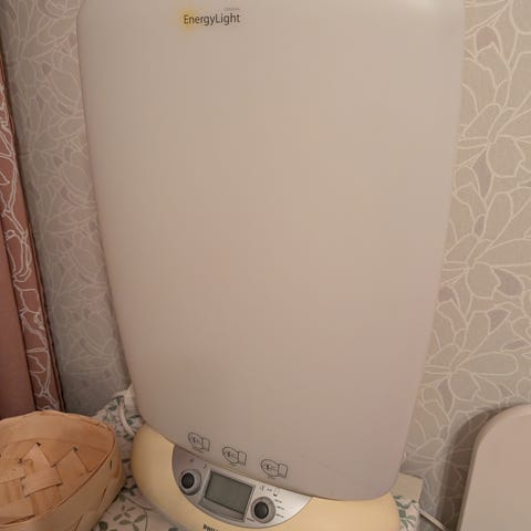 Käyttämätön kirkasvalolaite. Led, 10000 lux, pöydälle asennettavissa. Kuljetuspussi, laturi ja johto sisältyy.