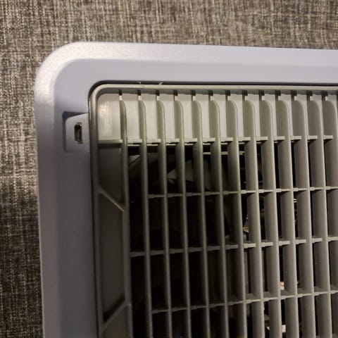 Ilmanviilennin/ ilmankostutin. Tuossa edessä nuo tuuletuslaikat pyörii eli laajemmalle alueelle pyörittää ilmaa.
