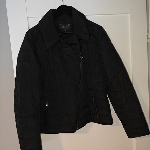 Musta toppatakki, kaikissa kuvissa ei näy mustana.
