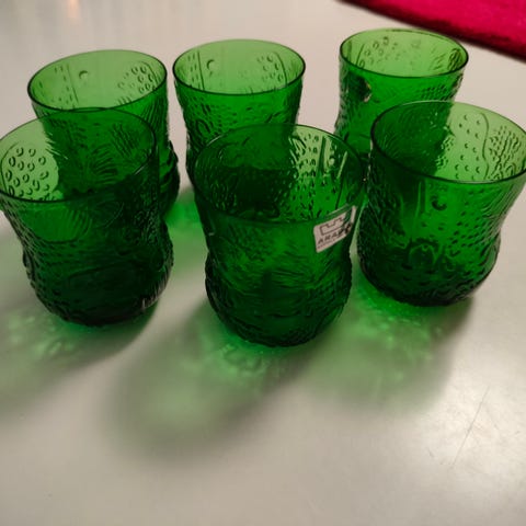 Myydään arabia fauna(oiva toikka) snapsilasi 6kpl.kolmessa tarra.täysin ehjät.arabia wärtsilä finland.
