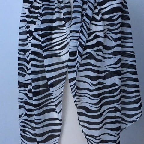 Tässä viskoosi/polyester pitkänomainen asustehuivi, joka on lehtikuvioinen, mutta tulee mieleen myös muodikas seepra.