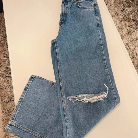 Ihanat farkut kukkakirjailulla. Lahkeet revityt. Haara-lahje 69cm. Koko 36.