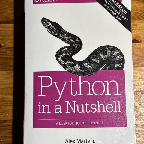 https://www.amazon.com/Python-Nutshell-Desktop-Quick-Reference/dp/1098113551/ref=sr_1_1?crid=30H2DFLHXYY1A&dib=eyJ2IjoiMSJ9.1GrWfyxGQAtCbzVANdvWpBeI90VMe-DXAlxrOl084Yuxg4m1vRYbpIiveyaEjTonpJSTNX9HPd6nK6dJQHQKNaSH2KY0j19SPr6Kx14wguM61DGchruNMvkU9Tlua3rA_UZQUgy9WgS69uU-VHeDLV6UkXf3EN_WcoFHiyGuD0U_1LB5F_4Rk50IxzmtuCQKMcYFlf_gWk6nHhevSiWuWogwcZqSBpqrCOSxHSHmI3Y.l76gE2cA9UNf7JZGKDhdlbSrIIDtWCPYbcGc0PRAG9w&dib_tag=se&keywords=python+in+a+nutshell&qid=1763562915&sprefix=python+in%2Caps%2C372&sr=8-1