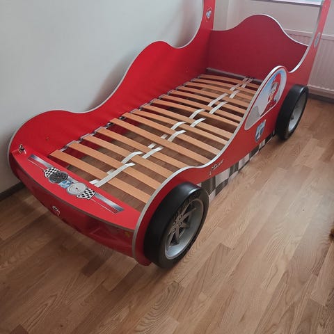 Autosänky patjalla. Ollut yhdellä lapsella ja on hyvässä kunnossa. Leveys 74cm ja pituus 150cm.