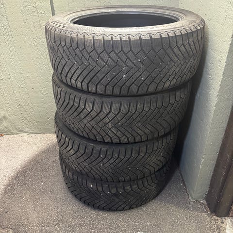 Myyn erittäin hyväkuntoiset vuoden 2023 Viking Contact 7 Continentalin kitkarenkaat (4 kpl). Kuvissa näkyy renkaiden kuvio, uudenveroinen kulutuspinta ja merkinnät. Uutena noin 1100e.